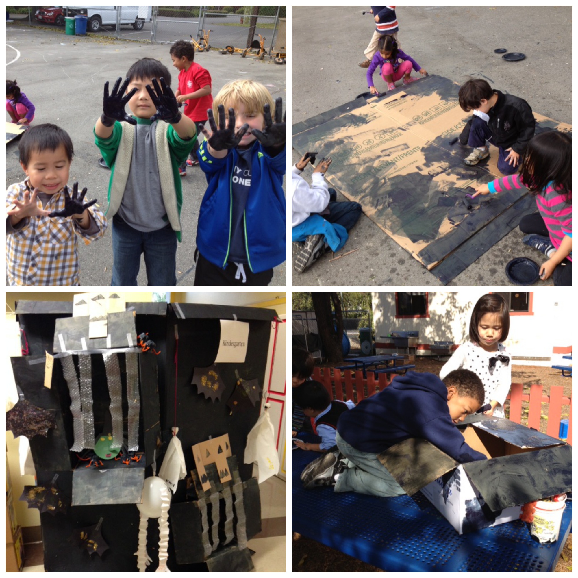 Today, classes worked on "spooky" art projects to display in their classrooms and around Cowper. They even painted large cardboard boxes black to create "haunted houses." Together, the classes created hanging ghosts, paper bag pumpkins, spiders, balloon skeletons, and much more! The children hoped to spook some parents and family members at pick up time with their creative decor.